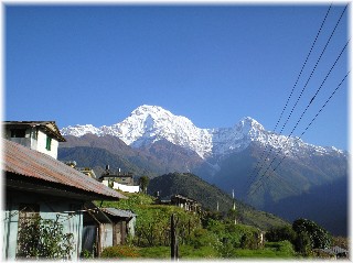 sunset the Machhapuchre (Fishtail) with it’s 7000m appears almost