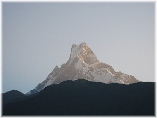 einen atemberaubenden Blick auf das Annapurnamassiv. Morgens, wenn die